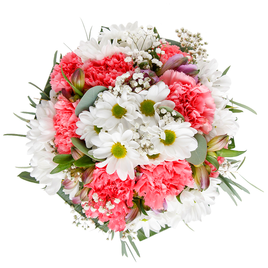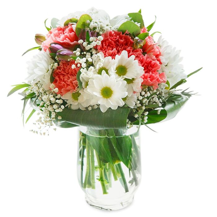 Immerse yourself in the serene beauty of our exclusive flower arrangement, crafted to mark those special moments. This bouquet radiates a gentle glow with pristine white chrysanthemums, delicate gypsophila, and tender light pink carnations, accented by lush aspidistra leaves. Each flower is meticulously hand-picked to ensure peak freshness and longevity, offering an enchanting display that lasts up to 5 days.